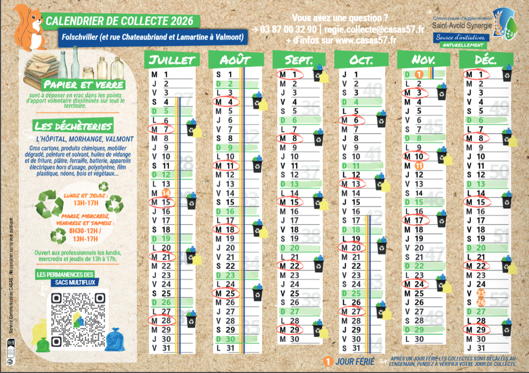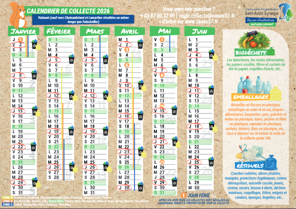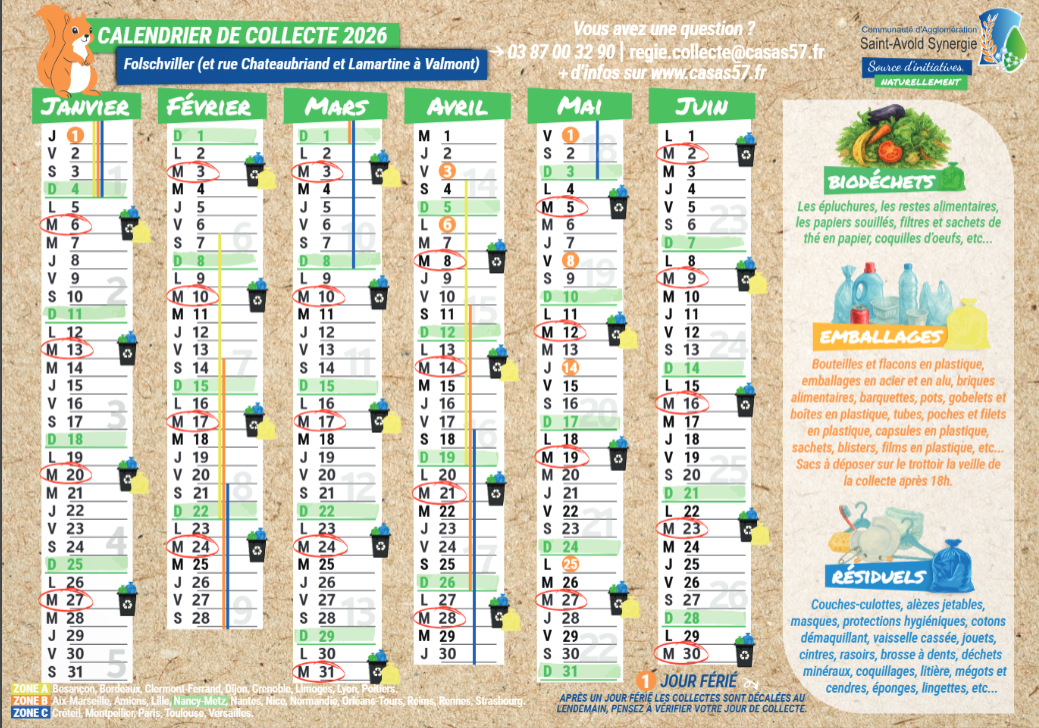 Attention ! Pour les rues Lamartine et Chateaubriand, le ramassage aura lieu aux mêmes dates que Folschviller.