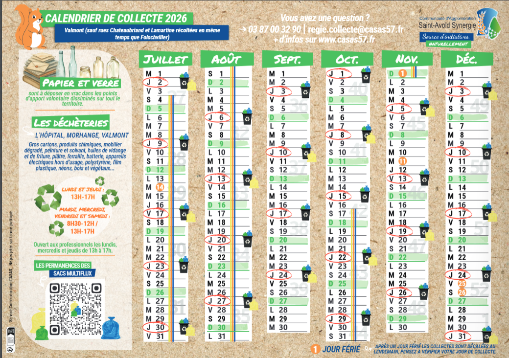 Voici les dates de collecte des sacs Multiflux pour la commune de Valmont.