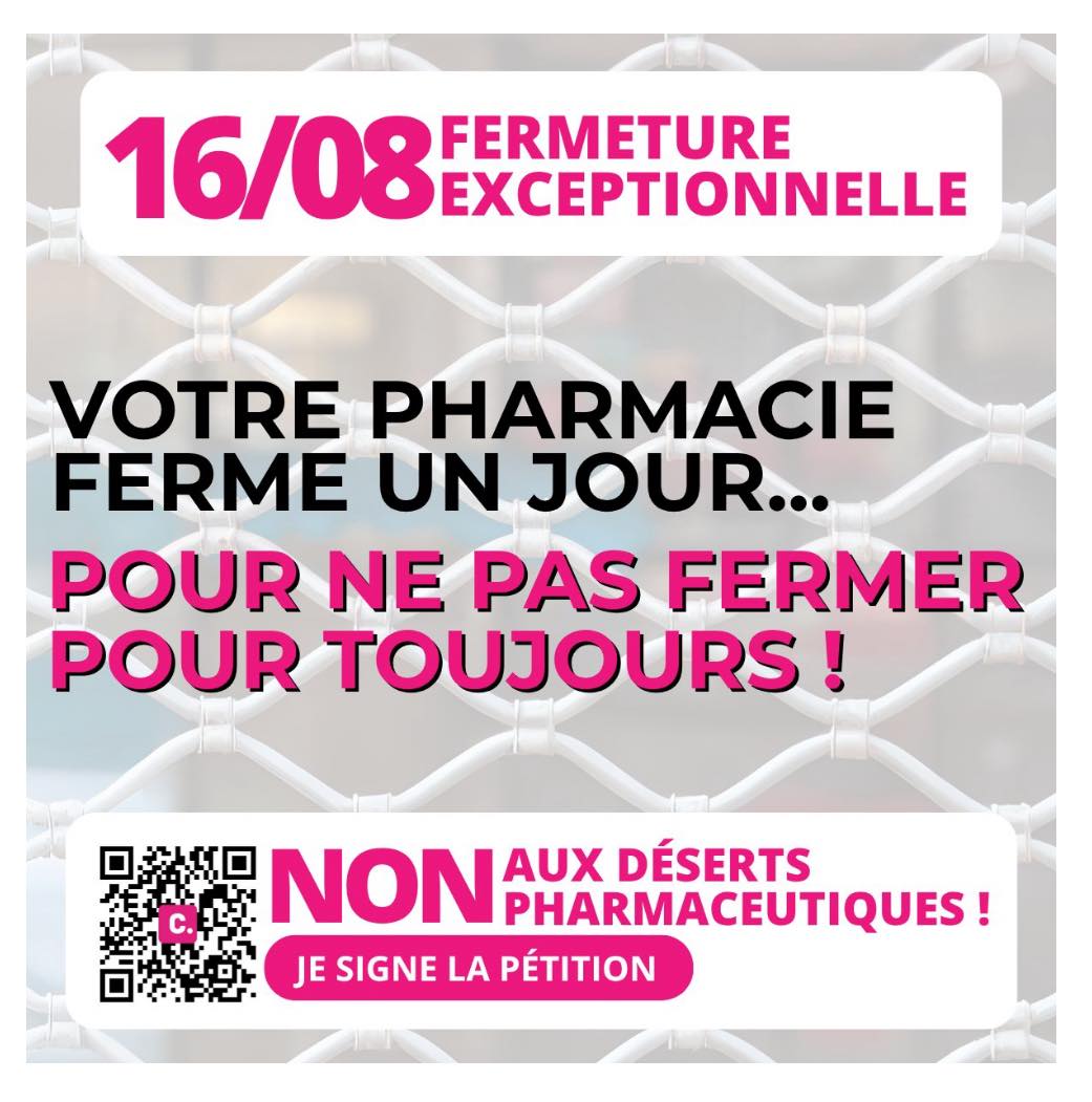 Fermeture exceptionnelle des pharmacies – 16 août 2025