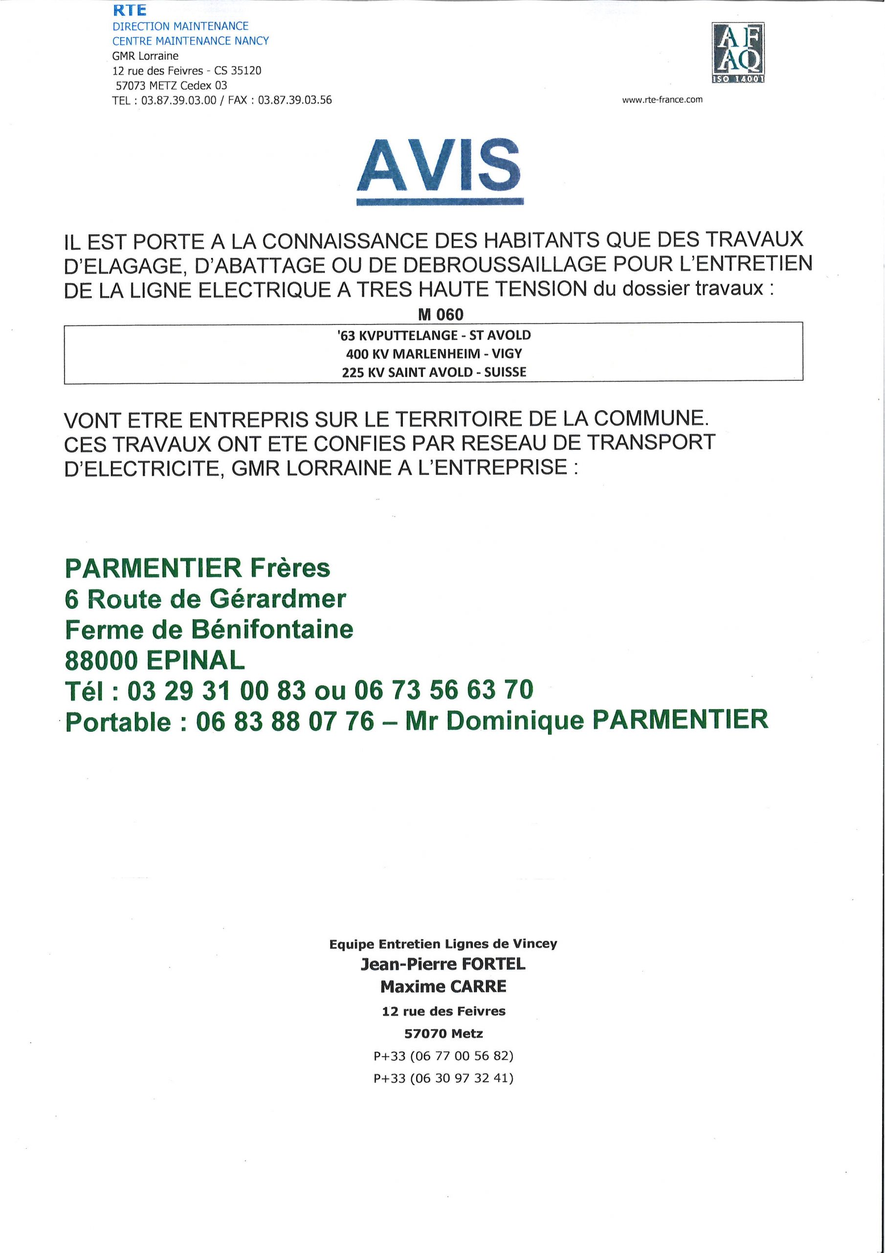Des travaux d’élagage, d’abattage et de débroussaillage vont être réalisés dans les prochains jours sur le territoire de la commune, pour l’entretien de la ligne électrique à très haute tension.